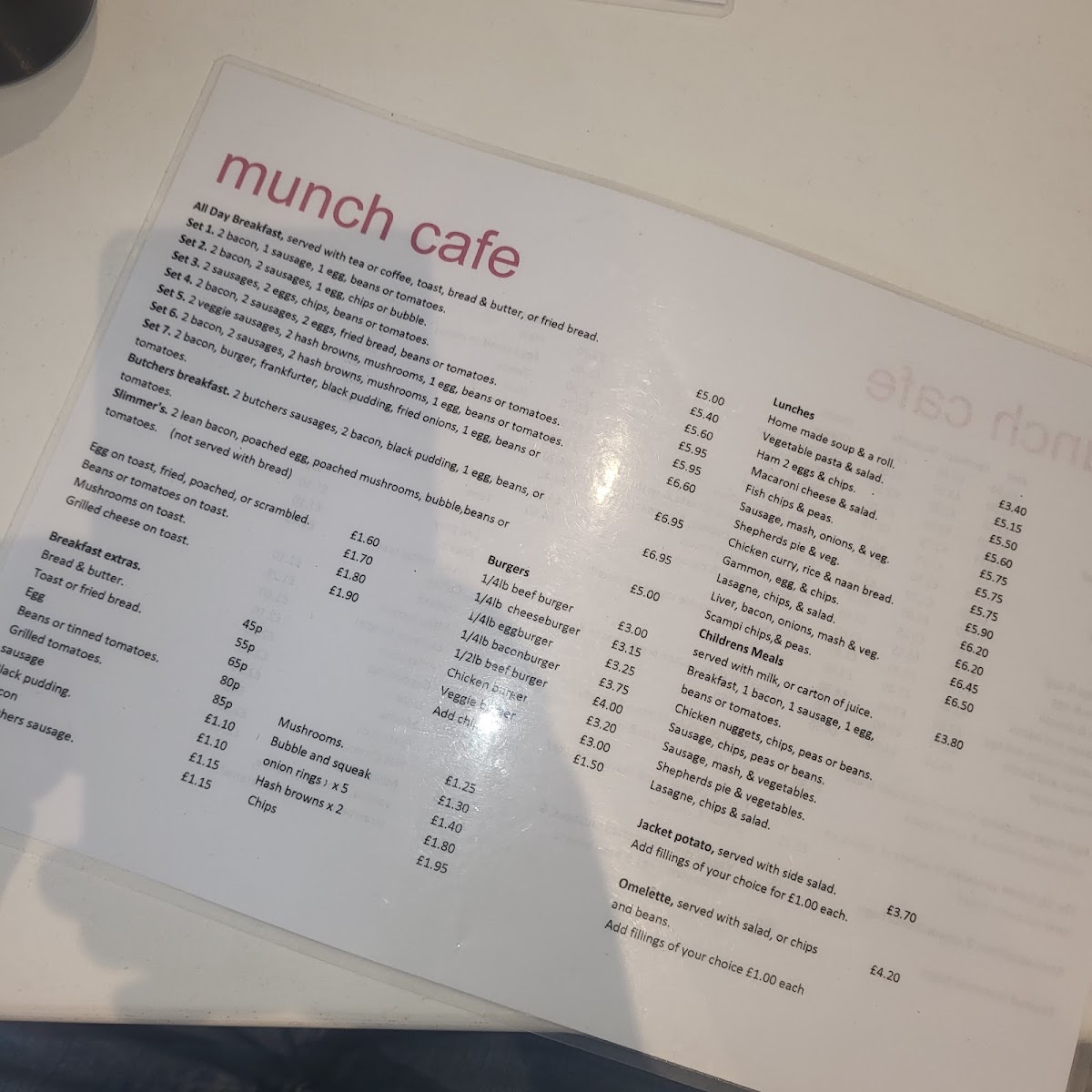 The menu at Munch offers a variety of meal options suitable for different times of the day, including breakfast, lunch, and casual dining. It is structured into distinct groups to accommodate a range of tastes and preferences.